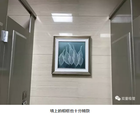 進(jìn)入衛(wèi)生間時,門上有“推”、“拉”等提示,墻上的相框也十分精致!