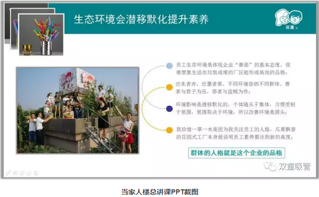 所以我們給員工使用五星級衛(wèi)生間并不是有錢沒地花,而是給員工用五星級的硬件,引導(dǎo)員工改變自身的思維和行為方式,讓員工關(guān)注細(xì)節(jié)!只有這樣,員工的素養(yǎng)和質(zhì)量意識才會提高,才能生產(chǎn)出更好的產(chǎn)品!對企業(yè)來說,影響產(chǎn)品質(zhì)量的最大要素是人的內(nèi)心和思想,唯有員工的思想轉(zhuǎn)變了,你生產(chǎn)出的產(chǎn)品才能讓客戶放心!“五星級”衛(wèi)生間的背后其實是“雙童”品質(zhì)追求的“人心和良心”!