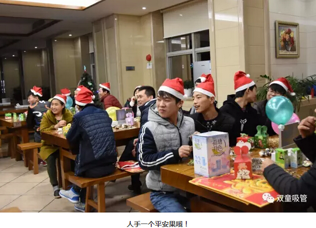 為了慶祝圣誕節(jié)的到來(lái),我們特地舉辦了這場(chǎng)節(jié)日氛圍濃厚的圣誕party哦!平安夜當(dāng)然要吃平安果啦,快看,壽星們?nèi)耸忠粋€(gè)平安果。除此之外,每個(gè)人頭上都有一頂可愛(ài)的圣誕帽子,乍一看,還以為是一群圣誕老人在聚會(huì)呢!