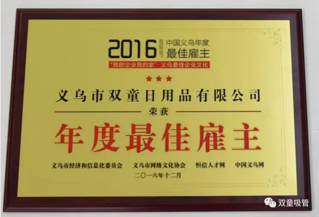 1月10日下午,“我的企業(yè)我的家”2016義烏最佳企業(yè)文化暨“最佳雇主”評選頒獎典禮在義烏工商學(xué)院舉行,近百位企業(yè)負責(zé)人共同見證了義烏新一屆“最佳雇主”的誕生!“雙童”也名列其中,被評為2016中國義烏年度"最佳雇主"及“最具社會責(zé)任雇主”企業(yè),副總吳小彬也被評為年度最佳雇主卓越HR!其實“雙童”一直以來都十分重視員工關(guān)懷,下面妞就帶大家來看看“雙童”是如何做的吧!