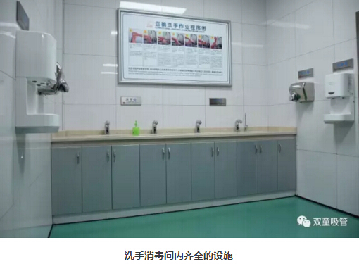 4、整理完衣物后,來到洗手消毒間,進(jìn)行洗手、烘干、消毒。