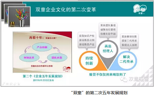 2011年“雙童吸管”開始做第二個五年規(guī)劃,通過產(chǎn)品創(chuàng)新、團隊再造、體制改革三個方面進行發(fā)展。
