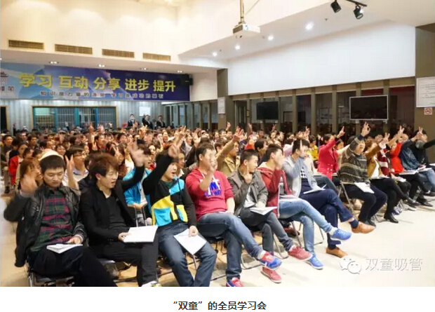 “雙童”一直倡導(dǎo)建設(shè)學(xué)習(xí)型企業(yè),營(yíng)造學(xué)習(xí)氛圍,每周召開兩次全體員工的學(xué)習(xí)會(huì),分批次分部門開展班組部門學(xué)習(xí)會(huì),通過(guò)企業(yè)文化書籍、意識(shí)形態(tài)、制度培訓(xùn)、技能培訓(xùn)等各個(gè)方面,對(duì)員工開展學(xué)習(xí)培訓(xùn)。無(wú)論是掃地阿姨還是看門叔叔,都必須參加全員學(xué)習(xí)會(huì),感受學(xué)習(xí)氛圍!