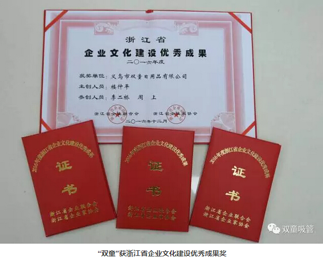 大會(huì)上頒發(fā)了浙江省2016年度“企業(yè)文化建設(shè)優(yōu)秀成果”獎(jiǎng),有五家企業(yè)獲得此項(xiàng)殊榮,“雙童”作為義烏唯一一家獲獎(jiǎng)企業(yè)也名列其中呢!