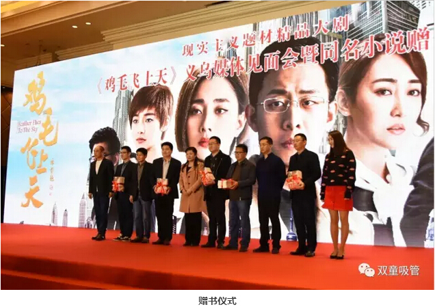 電視劇《雞毛飛上天》講述了義烏改革開放以來的發(fā)展歷程,凸顯了義烏人民自強(qiáng)不息、勇于開拓的奮斗精神。在此次見面會上也舉行了《雞毛飛上天》同名小說的贈書儀式,市政協(xié)副主席王迎、導(dǎo)演余丁、編劇申捷、主演陶澤如和高姝瑤將同名小說《雞毛飛上天》贈與教育局、檔案局、圖書館、商城集團(tuán)和義商總會,將浙商精神傳遞和延續(xù)下去。