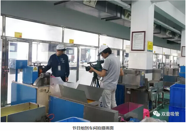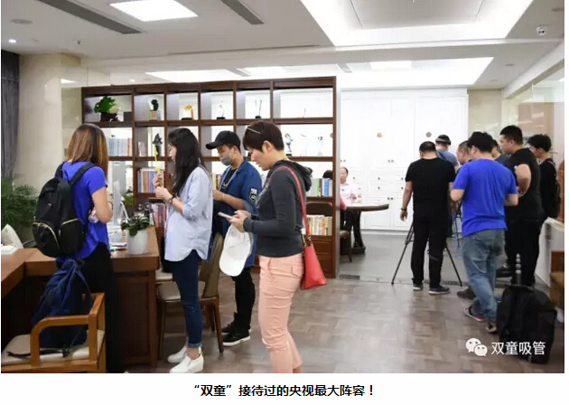 看看現(xiàn)場(chǎng)拍攝照片,二十多名拍攝記者、五臺(tái)攝像機(jī)分兩路行動(dòng),一路在辦公室做采訪對(duì)話(huà),一路徑直前往車(chē)間拍攝生產(chǎn)畫(huà)面。連當(dāng)家人樓總都不禁感嘆:這可真是“雙童”接待過(guò)的央視最大陣容!