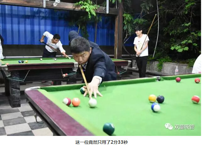 本次比賽的形式也十分有趣,選手們把所有球打進(jìn)洞中用時(shí)最短的前八名晉級(jí)進(jìn)行兩兩對(duì)決!瞧!選手們?nèi)齼上戮桶亚虼蜻M(jìn)了洞中,用時(shí)最短的竟然只有2分33秒,現(xiàn)場(chǎng)的臺(tái)球迷們直呼“破紀(jì)錄啦”!