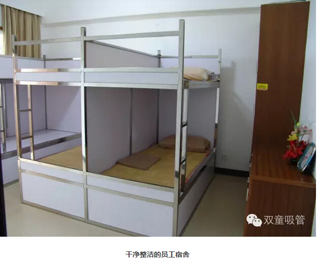除了良好的生態(tài)環(huán)境之外,“雙童”在建廠之初就按三星級(jí)標(biāo)準(zhǔn)對(duì)員工宿舍進(jìn)行裝修,員工的每個(gè)房間都配有干凈整潔的洗手間、寬敞明亮的洗衣陽(yáng)臺(tái),并配有各種家具,每個(gè)房間安裝有空調(diào),24小時(shí)供應(yīng)熱水洗澡和純凈飲用系統(tǒng),配備了最好的硬件。同時(shí),“雙童”也配備了專(zhuān)業(yè)物業(yè)團(tuán)隊(duì),為員工提供全方位的生活和后勤服務(wù)保障!