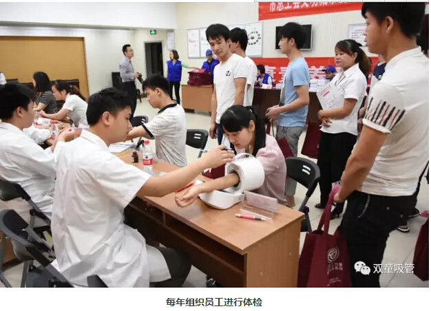 除了優(yōu)質(zhì)的餐飲住宿,活動(dòng)旅游,員工的身體健康也是我們最關(guān)心的話(huà)題。這不,“雙童”每年都會(huì)安排3次的員工體檢,請(qǐng)醫(yī)院專(zhuān)業(yè)體檢團(tuán)隊(duì)到廠內(nèi)給員工進(jìn)行現(xiàn)場(chǎng)免費(fèi)體檢。除此之外,我們也會(huì)組織女職工到醫(yī)院做免費(fèi)的婦科檢查。通過(guò)這樣的方式讓員工了解自己的身體情況,預(yù)防了疾病的發(fā)生!