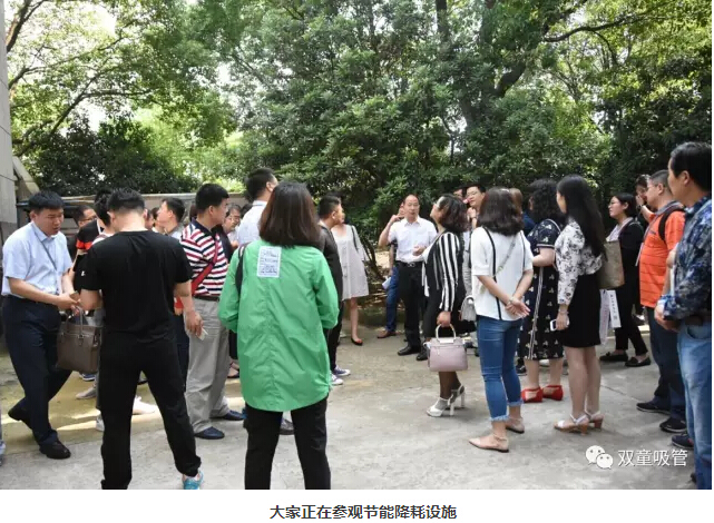 參觀的第一站是我們的節(jié)能降耗系統(tǒng)!“雙童”樓仲平向大家詳盡地介紹了廢水回用系統(tǒng)、雨水收集系統(tǒng)、垃圾分類系統(tǒng),光光是雨水收集系統(tǒng),每年就能為“雙童”節(jié)約100萬(wàn)水費(fèi)呢!