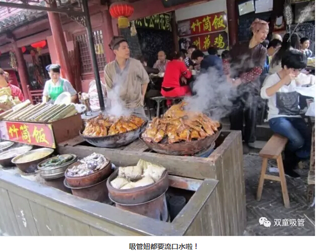 有的看,有的玩,當(dāng)然也有的吃啦!在宋城里,空中彌漫著濃濃的飯菜香,“店小二”在店門(mén)口熱情招呼客人。你可以體驗(yàn)叫花雞、東坡肉、蔥包“檜”、武大郎炊餅等舌尖上的美味……身為一枚專業(yè)吃貨,妞可是一發(fā)現(xiàn)美食就告訴“雙童”的兄弟姐妹們哦?。ㄎ芫龖崙嵅黄剑耗愣际浅酝暝僬f(shuō)的?。?/span>