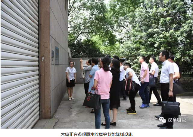 首先,吸管妞帶大家參觀起了“雙童”的節(jié)能降耗措施,參觀了雨水收集處、垃圾分類站等地,和大家講解了“雙童”的廢水循環(huán)利用以及雨水收集系統(tǒng)和原理。老師和同學(xué)們對“雙童”這種生態(tài)循環(huán)、節(jié)約資源的做法十分認(rèn)可,更對樓總多年前能有這樣的環(huán)保理念十分敬佩!