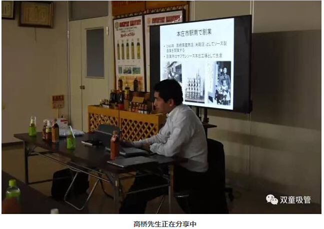 吸管妞首先和大家分享專(zhuān)注于制作加工100%有機(jī)食品的高橋醬料株式會(huì)社。接待我們的常務(wù)董事高橋義揚(yáng)是第三代繼承人,據(jù)他介紹,高橋醬料株式會(huì)社成立于1946年,從經(jīng)營(yíng)大米起步,經(jīng)歷發(fā)展演變,現(xiàn)在專(zhuān)注于制作牛排醬汁、沙拉醬汁、蕃茄醬等100%天然有機(jī)醬料,主要供應(yīng)日本餐廳使用。目前公司共有65人,平均年齡在35歲左右,但是最老的員工已經(jīng)在這里工作了30年,這點(diǎn)也讓大家非常驚訝。
