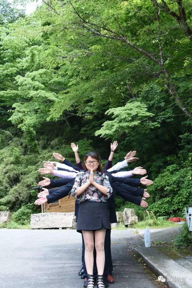 吸管妞在這里也和大家分享一個(gè)小細(xì)節(jié):下圖中的大合照,吸管妞和我們的美女同事坐在兩條白色的椅子上。在最右邊還有一條黑色的椅子。這些椅子就這樣露天放在景區(qū)里,供游人休憩合影所用。雖然剛下過小雨,這些椅子卻干干凈凈,沒有水滴,也沒有銹跡,可以想見日本人的及時(shí)維護(hù)和細(xì)心程度。在每批游客用完椅子后,都會(huì)細(xì)心地將椅子放回原位。這是日本人的自律,值得大家一起學(xué)習(xí)!