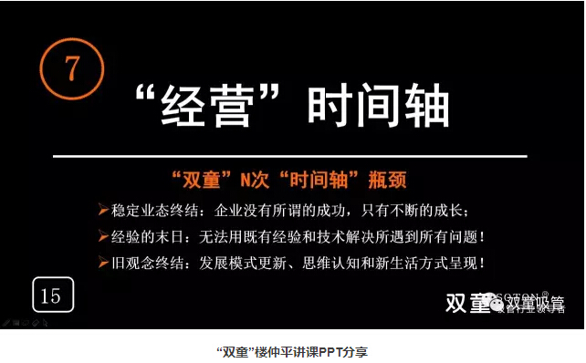未來十年,“雙童”將繼續(xù)轉(zhuǎn)變商業(yè)模式,在規(guī)模上保持適量擴(kuò)張,實(shí)施機(jī)器換人提高產(chǎn)出效率,重塑流通渠道,提高市場(chǎng)占比!“適當(dāng)?shù)囊?guī)模”未必跟硬資產(chǎn)規(guī)模、產(chǎn)值、員工數(shù)成正比,不同行業(yè)對(duì)企業(yè)“適當(dāng)?shù)囊?guī)模”應(yīng)該有不同的認(rèn)知和判斷,根據(jù)企業(yè)經(jīng)營(yíng)“時(shí)間軸”變化做相應(yīng)調(diào)整來改變“雙童”未來在行業(yè)當(dāng)中的地位!