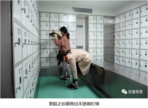 2、員工來到第一更衣區(qū),將自己的私人衣物儲存在柜子中。