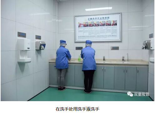 4、整理完衣物后,來到洗手消毒間,進(jìn)行洗手、烘干、消毒。