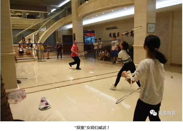 7月18日晚七點(diǎn)半,“雙童”的小伙伴們在行政大廳內(nèi)舉辦了一次精彩的羽毛球賽。要說活動(dòng)現(xiàn)場,那可是十分的激動(dòng)人心呀!炎炎夏日也抵擋不住大家想運(yùn)動(dòng)的心!下面妞就給大家來個(gè)現(xiàn)場直播!
