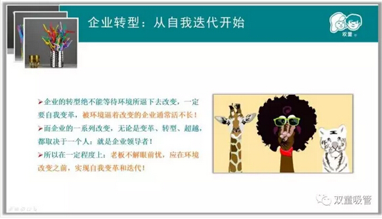 如何來(lái)解決這樣的難題呢?樓仲平也圍繞此話題進(jìn)行了分享:“企業(yè)的轉(zhuǎn)型絕不能等待環(huán)境所逼下去改變,一定要自我變革。而企業(yè)的一系列改變,無(wú)論是變革、轉(zhuǎn)型、超越,都取決于一個(gè)人:就是企業(yè)領(lǐng)導(dǎo)者。 所以在一定程度上:老板不解眼前憂,應(yīng)在環(huán)境改變之前,實(shí)現(xiàn)自我變革和迭代!”