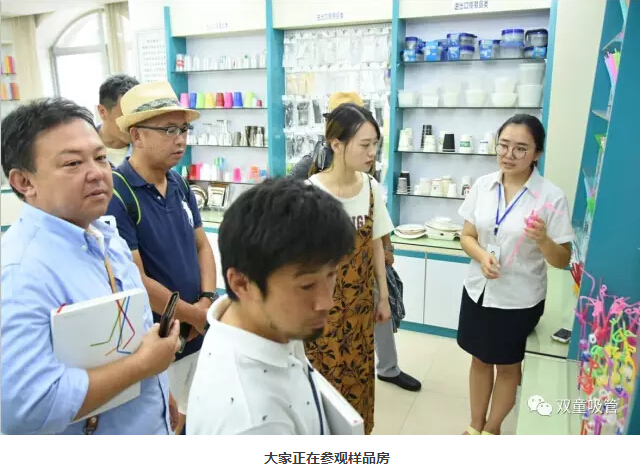 既然到“雙童”參觀,產(chǎn)品自然也是日本客人們重點(diǎn)關(guān)注的方面之一!當(dāng)他們到樣品房看到“雙童”琳瑯滿目的創(chuàng)新吸管時(shí),都對(duì)“雙童”的研發(fā)能力十分驚訝,甚至當(dāng)即要求購(gòu)買一些創(chuàng)新產(chǎn)品帶回日本作為紀(jì)念。