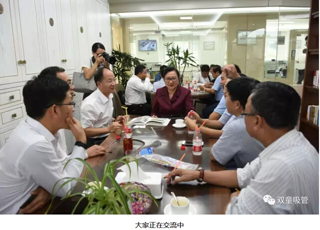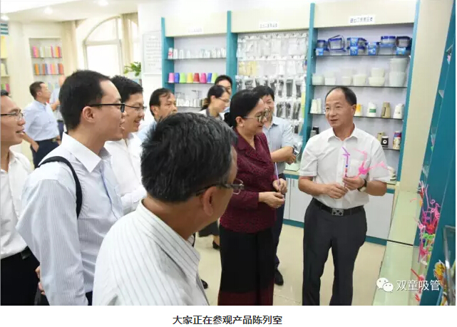 接著,大家來到了樣品房,被琳瑯滿目的各類吸管所吸引。“雙童”樓仲平向部長先生詳細介紹了我們近些年研發(fā)的一系列創(chuàng)新吸管,并說明這些吸管都是申請了專利證書。同時,“雙童”還是浙江省唯一由單一企業(yè)承擔“行業(yè)標準、國家標準和ISO國際標準”的中小企業(yè)。部長先生再次被“雙童”的工匠精神所震撼!她表示,她從來沒有想過一根吸管竟然還能有如此多的創(chuàng)意。部長先生高興地說:“我真是太喜歡‘雙童’了!”