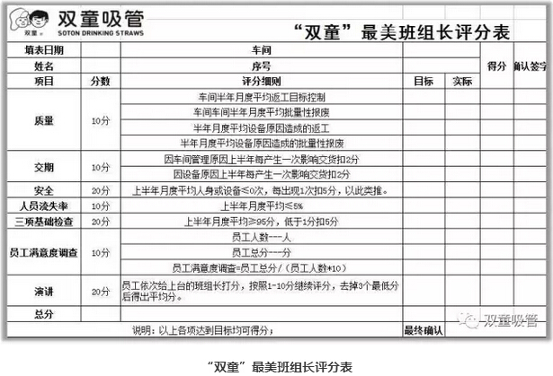 評選細(xì)則:對班組長的工作進(jìn)行嚴(yán)格評選