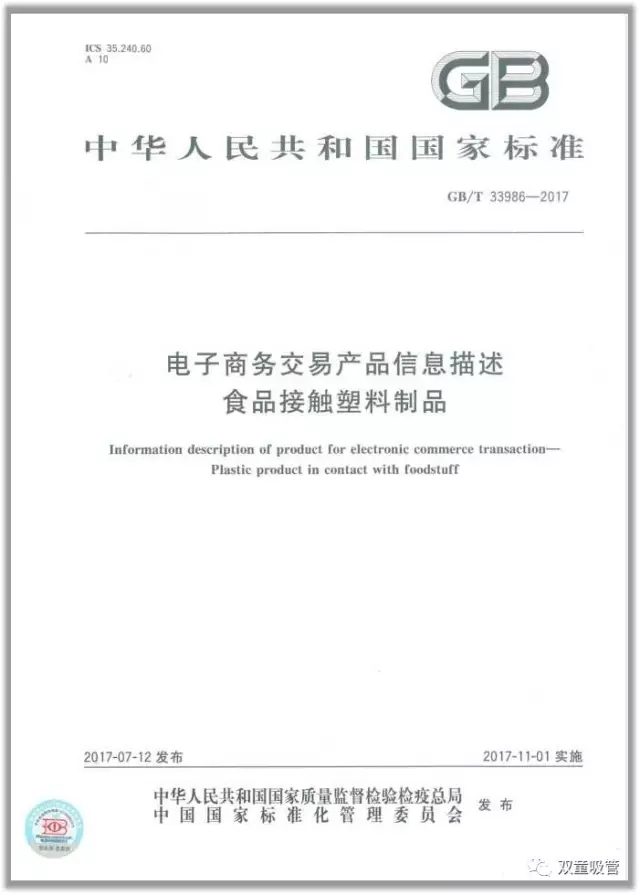 “雙童”主導(dǎo)起草的《電子商務(wù)交易產(chǎn)品信息描述 食品接觸塑料制品》正式發(fā)布實(shí)施
