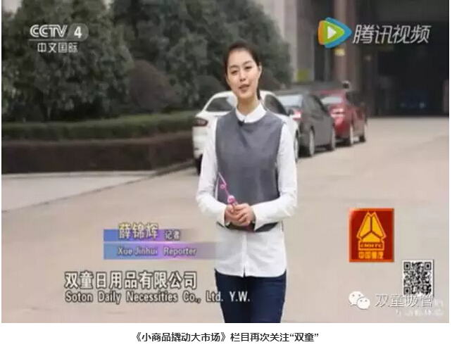 2006年,央視《走遍中國(guó)》欄目組拍攝《走進(jìn)義烏》專輯。唐立新編導(dǎo)來(lái)義烏的前兩天都在義烏四處尋找拍攝素材,當(dāng)他找到“雙童”全面了解公司的創(chuàng)業(yè)經(jīng)歷后,立即決定對(duì)“雙童”進(jìn)行全方位的考察。