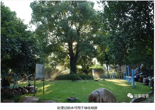 廢水收集處理循環(huán)回用系統(tǒng)的投入與回報(bào):2004年,“雙童”建設(shè)了廢水收集處理及中水回用系統(tǒng),將所有的廢水進(jìn)行集中處理,并儲(chǔ)存?zhèn)溆?,供?yīng)給寢室衛(wèi)生間內(nèi)的抽水馬桶、屋頂綠化、綠化噴淋和道路清洗。這樣一來,“雙童”的廢水得到了再生利用,基本實(shí)現(xiàn)了企業(yè)產(chǎn)生廢水的不斷循環(huán),基本消滅了企業(yè)的廢水排放和污染,每年為企業(yè)節(jié)約水費(fèi)支出40多萬元。