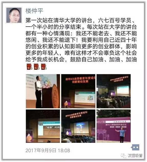 9月9日,由清華大學(xué)主辦的以創(chuàng)新驅(qū)動(dòng)發(fā)展為主題的清華SCE高管教育年度論壇在清華大學(xué)大禮堂隆重舉辦!“雙童”樓仲平受邀在現(xiàn)場(chǎng)為600多位清華大學(xué)高管學(xué)員們分享了一場(chǎng)專題課程《企業(yè)低成本創(chuàng)新的發(fā)展邏輯》!