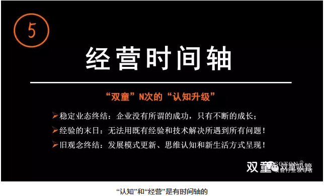 樓仲平也用“雙童”的發(fā)展史告訴大家經(jīng)營(yíng)也是有時(shí)間軸的,會(huì)遇到各種瓶頸和每個(gè)階段的“天花板”。企業(yè)沒有所謂的成功,只有不斷的成長(zhǎng),我們無法用既有經(jīng)驗(yàn)和技術(shù)解決所遇到所有問題!