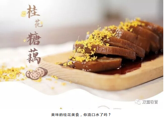 《本草綱目拾遺》中說:桂花,味辛,性溫。桂花氣味濃重,辛香隨氣,最易走竄。能為身體驅(qū)走陰寒,幫助疏通瘀滯,喚醒脾胃。氣味,香味都比肉桂他們美太多,還是花材里的“溫陽擔當”。不僅如此,桂花還可用來制作桂花鴨、桂花藕、桂花糕、桂花茶……食材配上花材,那味道,簡直是……額,吸管妞的口水都要流下來啦!