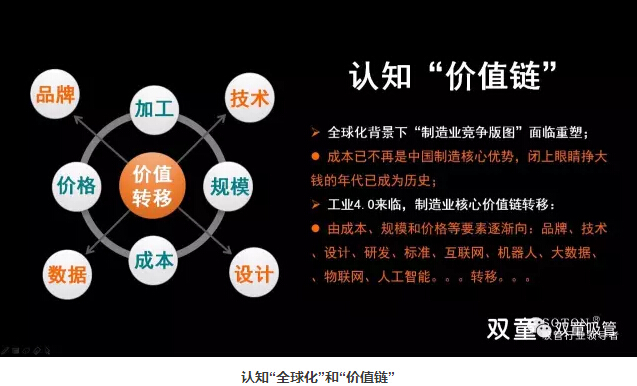 在全球化的背景下,成本不再是制造業(yè)的核心優(yōu)勢(shì)。企業(yè)必須面對(duì)時(shí)代的不斷變化,產(chǎn)業(yè)發(fā)展“棲”水草而居,中國(guó)制造商業(yè)競(jìng)爭(zhēng)“價(jià)值鏈”轉(zhuǎn)移逐漸從“規(guī)模型”向“價(jià)值型”轉(zhuǎn)變。企業(yè)經(jīng)營(yíng)“核心價(jià)值鏈”轉(zhuǎn)移,由成本、價(jià)格、設(shè)備、產(chǎn)品等要素逐漸轉(zhuǎn)向品牌、渠道、標(biāo)準(zhǔn)、研發(fā)、數(shù)據(jù)、互聯(lián)網(wǎng)…… 傳統(tǒng)業(yè)主杯具時(shí)代已經(jīng)來臨:經(jīng)驗(yàn)逐漸成為毒藥!
