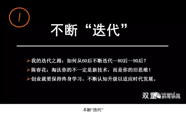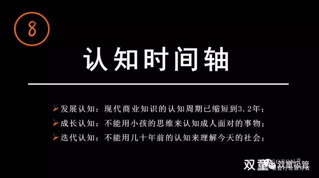 現(xiàn)代商業(yè)知識(shí)的認(rèn)知周期已縮短到3.2年,我們不能用小孩的思維來認(rèn)知成人面對(duì)的事物,更不能用幾十年前的認(rèn)知來理解今天的社會(huì)。每個(gè)人的成長(zhǎng)伴隨著不斷的否定,在認(rèn)知、糾錯(cuò)、不斷改變下實(shí)現(xiàn)自我成長(zhǎng)。“創(chuàng)業(yè)者”最應(yīng)該有“時(shí)間軸”的概念,需要擁有自我蛻變的能力,否則你就很難成長(zhǎng)!