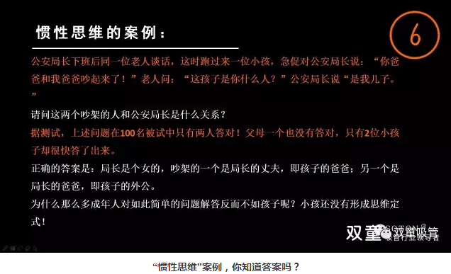 據(jù)測(cè)試,上述問題在100名被試中只有兩人答對(duì)!父母一個(gè)也沒有答對(duì),只有2位小孩子卻很快答了出來。