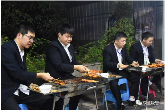 咦?車間管理們也爭當(dāng)起了“燒烤小販”,為壽星們進行服務(wù)。員工們喝著美酒吃著主管們烤的肉串,別提多開心啦!往往員工手上的還沒吃完,這邊領(lǐng)導(dǎo)們就已經(jīng)笑瞇瞇地把新烤好的肉串奉上了,吃都來不及,這是什么節(jié)奏?