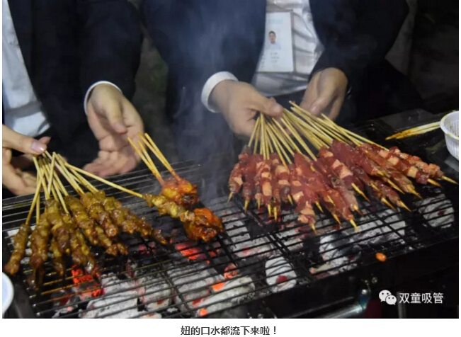 雞翅肉串、羊肉牛肉、年糕香腸……生日會辦成了自助燒烤、篝火酒會,推杯換盞,大聲調(diào)笑,氣氛 so hot!什么都別說,也別問吸管妞到底吃了多少羊肉串,大家只要看看這些照片,再分享一下就行了!