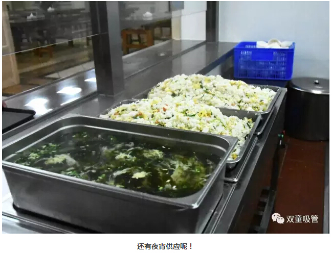 中餐和晚餐就更加豐盛啦,都是三菜一湯的標(biāo)準(zhǔn)。一葷兩素營養(yǎng)搭配,每天都不一樣哦!夜宵則有蛋炒飯、紫菜雞蛋湯、面條…… 晚上11點還有營養(yǎng)的夜宵供應(yīng),員工們進了“雙童”可得胖三斤呀!