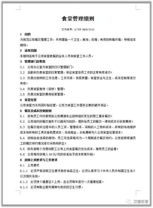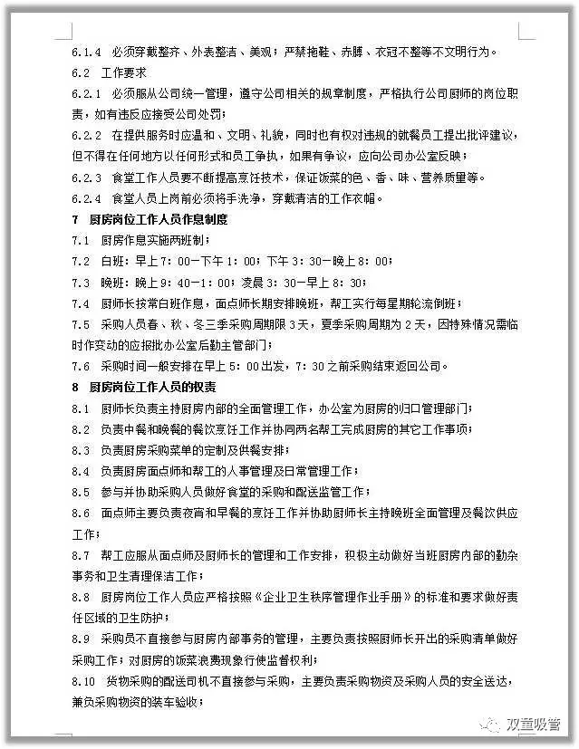 對于餐飲的管理,我們也有一系列的制度文件支撐!從1997年開始,“雙童”就對食堂進行了規(guī)范管理,制定了很多的管理型文件!