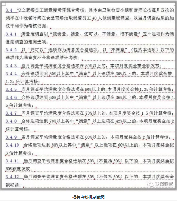 除此之外,我們設(shè)立了就餐員工滿意度綜合考核,按每月四次在食堂現(xiàn)場抽取就餐員工進行滿意度調(diào)查,廚師的考核獎金也直接和員工的滿意度掛鉤,盡力滿足員工們的就餐需求,足以見得“雙童”對員工餐飲的重視!
