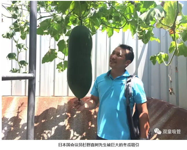 菜園子里還有很多“三生有幸”的瓜,不信!瞧,菜園里的這幾個(gè)冬瓜可是受到了日本議會(huì)議員杉野直樹先生、老撾工貿(mào)部部長開瑪妮·奔舍那的青睞,還留下了合影,你們說這些是不是“三生有幸”的瓜呢?