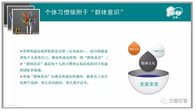 除此之外,屋頂菜園、廠區(qū)的綠化、甚至是隨處可見的鏡框標(biāo)語都在潛移默化地影響著員工,瓜果飄香的花園式工廠本身就說明員工素養(yǎng)要達(dá)到新的高度。通過這樣的方式,員工長時(shí)間自律提升后就形成了自身的行為習(xí)慣,在改善工作生活的同時(shí)形成精細(xì)化管理氛圍。所以,即使沒有明令禁止,“雙童”人也非常自覺不會去采摘柚子,更不會破壞廠區(qū)里的一草一木!