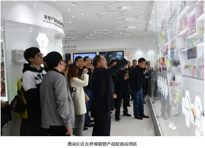揭幕儀式之后,所有嘉賓們一起進(jìn)入中國(guó)吸管博物館進(jìn)行參觀,共同觀看了中國(guó)吸管博物館宣傳片。“雙童”樓仲平和大家一一介紹了吸管產(chǎn)業(yè)發(fā)展的歷史和現(xiàn)狀、吸管生產(chǎn)技術(shù)進(jìn)步展示區(qū)、吸管產(chǎn)品配套應(yīng)用區(qū)、創(chuàng)新產(chǎn)品體驗(yàn)區(qū)、吸管產(chǎn)品DIY展示區(qū)、吸管產(chǎn)業(yè)資料展示區(qū)等各項(xiàng)展示區(qū)域,嘉賓們?cè)趨⒂^的過(guò)程中連連驚嘆:一根吸管原來(lái)還有這么豐富的內(nèi)容展示!