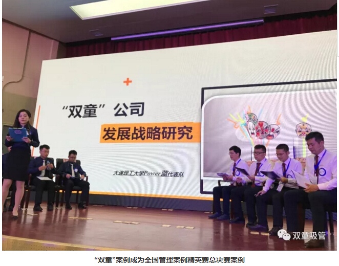 在2017年全國管理案例精英賽中,《以小博大,一根吸管的藍(lán)海之旅》案例還成為了精英賽總決賽的案例!原來,組委會(huì)在挑選總決賽案例素材時(shí),更傾向于挑選具有時(shí)代背景、可評價(jià)性和標(biāo)桿性的案例,他們希望通過對該案例的分析,引導(dǎo)大學(xué)生對企業(yè)商業(yè)模式和核心競爭力的認(rèn)知,加深在時(shí)代背景下對制造業(yè)的認(rèn)知。在挑選過程中,他們一致認(rèn)為“雙童吸管”案例最符合他們的期望!