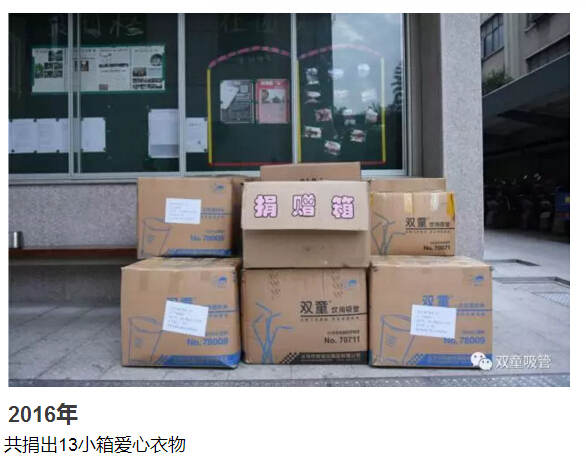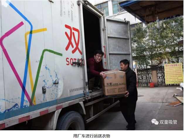 前幾天,吸管妞也將收拾好的衣物送至“義烏十大好人”老丁的衣物捐贈處。由于衣物太多,我們用了“雙童”的廠車運輸,順便也給我們自己做了宣傳,哈哈?。±隙”硎荆菏指兄x“雙童”多年來堅持舉辦暖冬活動,也希望有更多的人能夠參與到此項活動中來!
