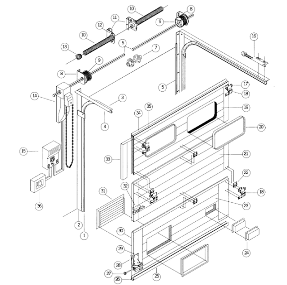 7,平衡系統(tǒng),提升門均由高強(qiáng)彈簧系統(tǒng)保證平衡,彈簧的少使用壽命為30,000循環(huán)周期。彈簧為低應(yīng)力、油回火、螺旋纏繞在整體鋼軸上扭力型彈簧,材料采用60Si2Mn。