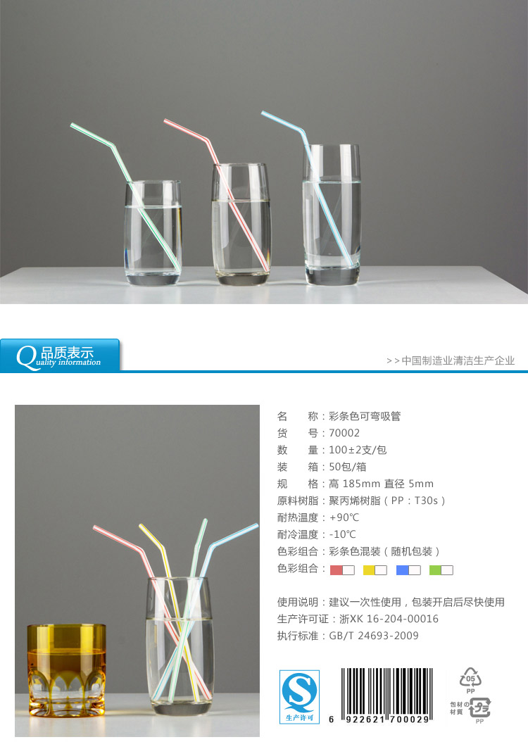 70002雙童100支彩條色普通彎吸管
