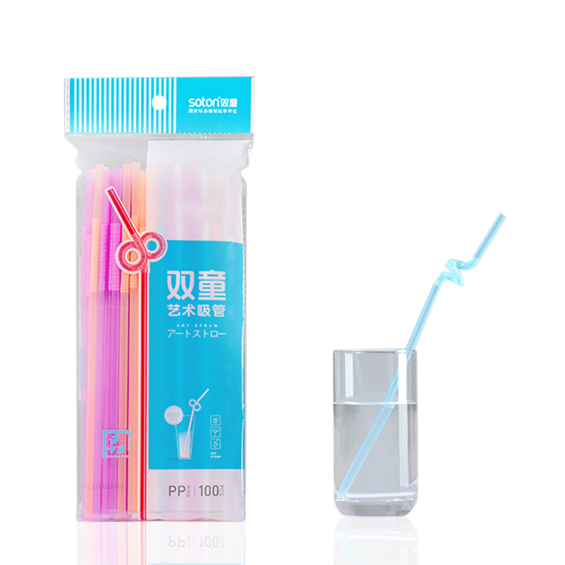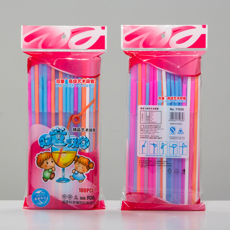 71035雙童100支淺色熒光四色混裝藝術吸管