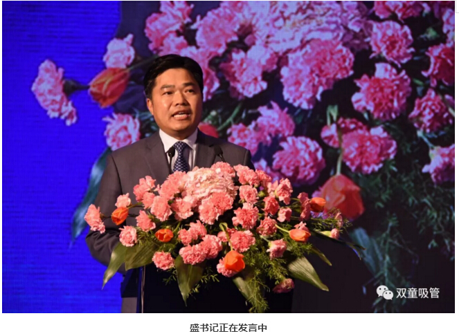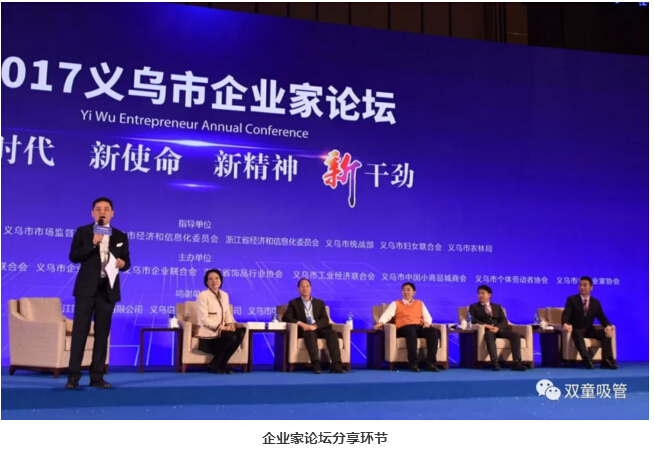 首先,義烏市委書記盛秋平先生發(fā)表了義烏工業(yè)經(jīng)濟(jì)發(fā)展報告,寄語義烏企業(yè)家,要把握機(jī)遇、奮發(fā)勇為,弘揚(yáng)“雞毛換糖”精神,開創(chuàng)新時代新征程,在發(fā)言中還著重點(diǎn)贊了“雙童”的標(biāo)準(zhǔn)創(chuàng)新工作!