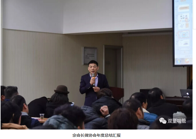 參觀結(jié)束之后,大家回到了“雙童”九樓活動(dòng)中心正式開啟此次年會(huì)議程。此次大會(huì)圍繞“不忘初心,再創(chuàng)輝煌--恒心、信心、匠心”的主旨開展。在年會(huì)中,宗會(huì)長(zhǎng)首先作了協(xié)會(huì)的年度匯報(bào),向在座會(huì)員們匯報(bào)了協(xié)會(huì)一年來(lái)舉辦的各項(xiàng)活動(dòng)、獲得的榮譽(yù)及成果,并對(duì)2018年度協(xié)會(huì)工作提出了新的期望!